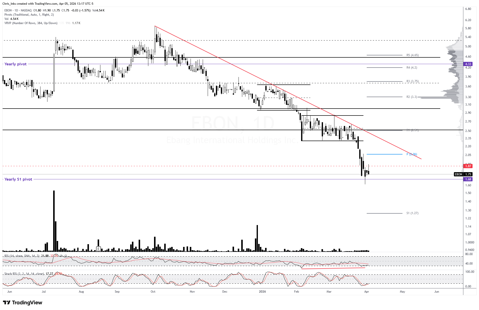 Price caught a bid and bounced just before the ~1.83 target. That bounce carried it into the monthly pivot which is holding as resistance for the moment.
