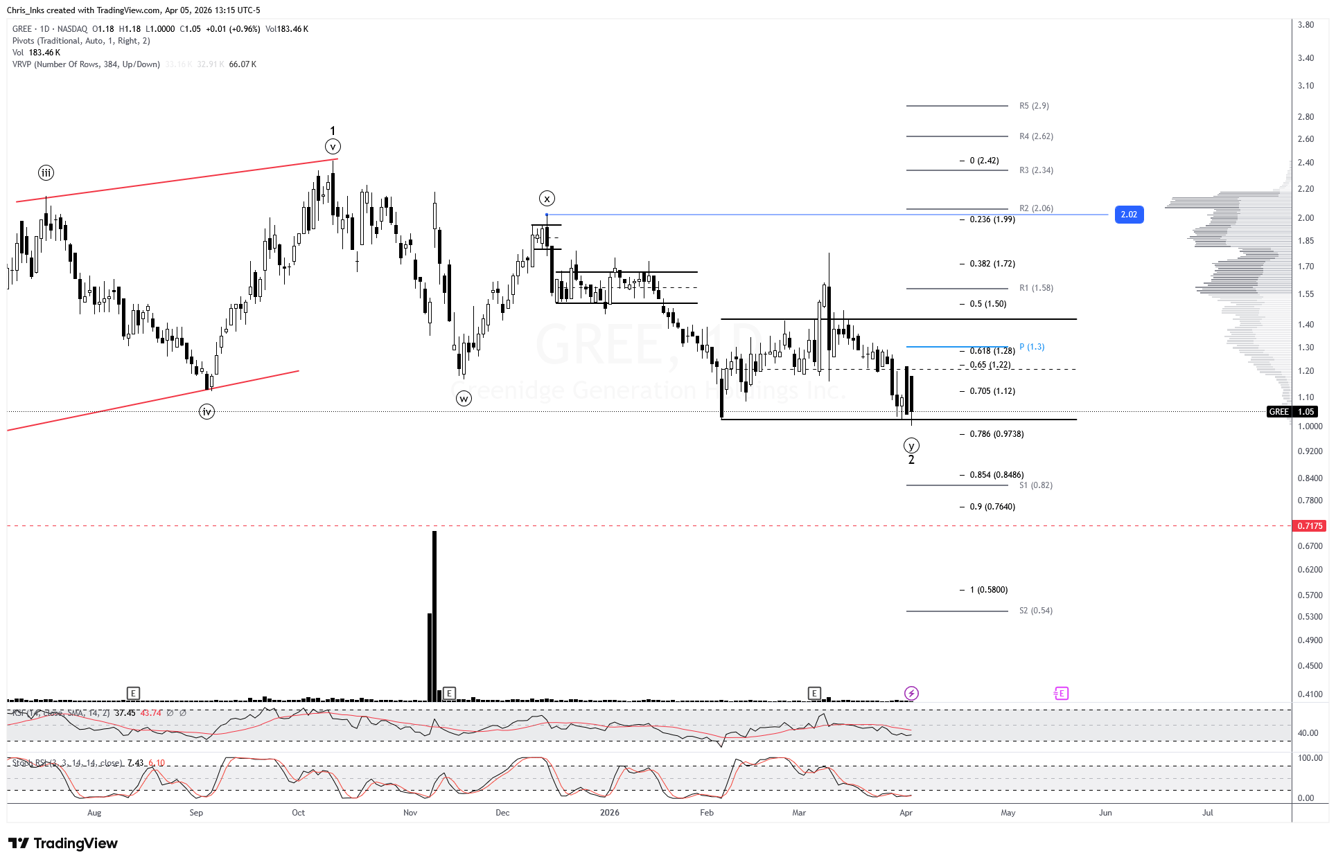 An impulsive daily candle breakout and close above the descending red resistance will signal that the low may be in. That will give us a target of the yearly pivot at ~4.33.